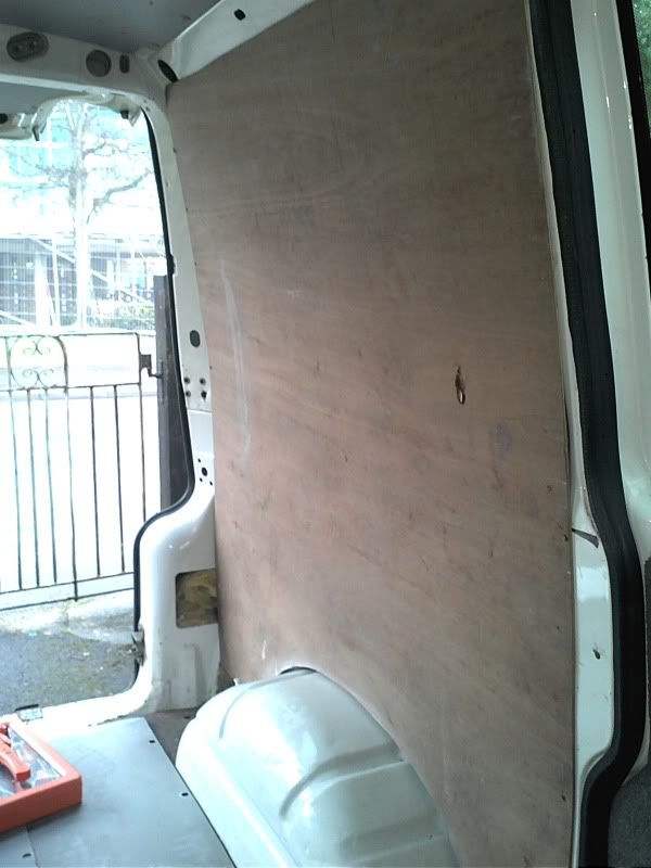 Front of rear panels were already carpeted from the factory it seems, but still will need re-doing