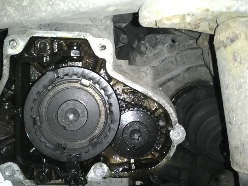 A completely dry gearbox. And a pair of 5th gear cogs that were completely stripped of all the teeth they once had.